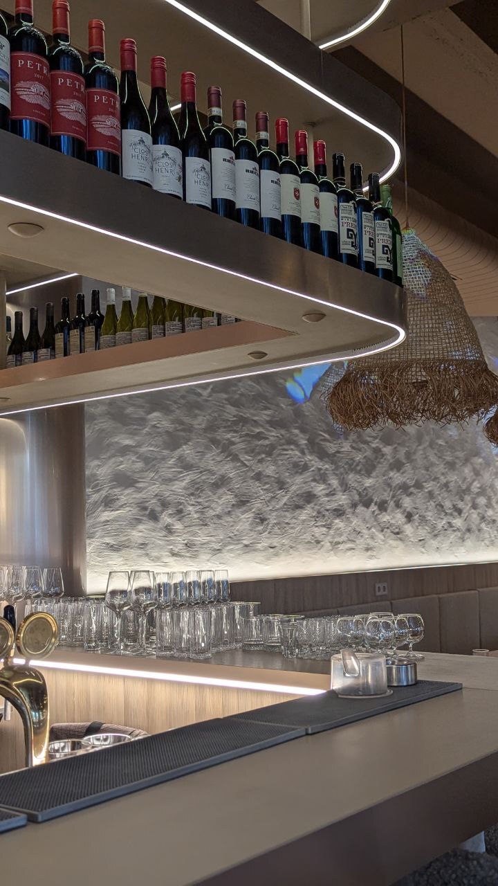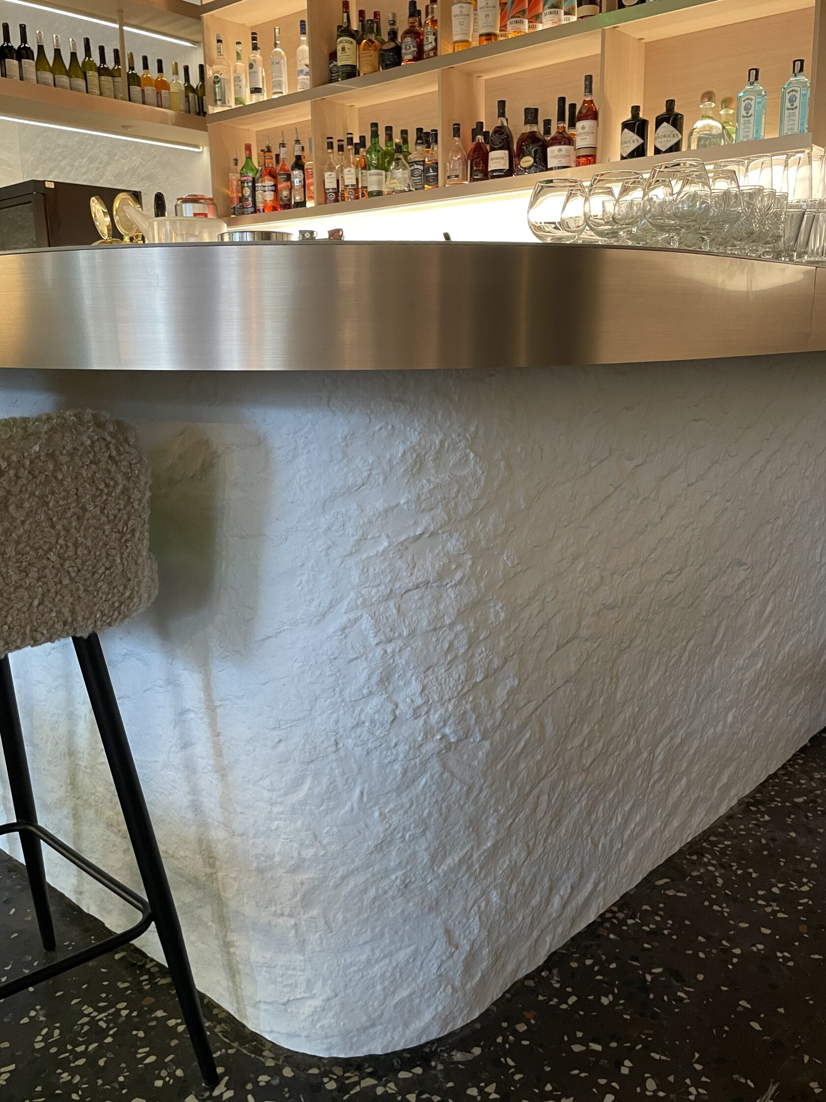 Оформление барной стойки гибким камнем NEO и панелями NEO металлической серии.